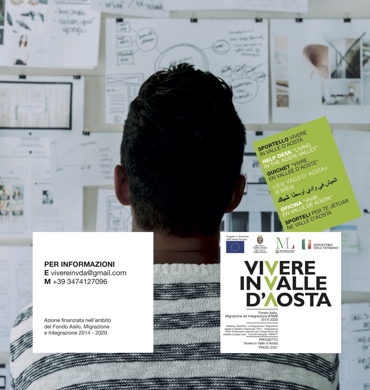 Lo sportello Vivere in Valle d’Aosta è il principale punto di accesso ai servizi e al territorio della regione per i cittadini immigrati. Si rivolge a cittadini stranieri extracomunitari regolarmente soggiornanti sul territorio nazionale, inclusi i richiedenti asilo. È stato creato e gestito all’interno del Fondo Asilo, Migrazione e Integrazione (FAMI) 2014-2020 fino al 01/10/2022. La Regione autonoma Valle d’Aosta ha valutato opportuno finanziare la prosecuzione del servizio fino al 31/12/2023, con risorse derivanti dal Fondo Nazionale Politiche Migratorie e in attesa di un nuovo finanziamento FAMI, al fine di garantire i servizi essenziali ai cittadini di paesi terzi che vivono in Valle d’Aosta. In tale finestra temporale (01/10/2022 – 31/12/2023) il servizio è esteso a tutti i cittadini stranieri, compresi i comunitari, e a coloro che hanno acquisito da poco la cittadinanza italiana.